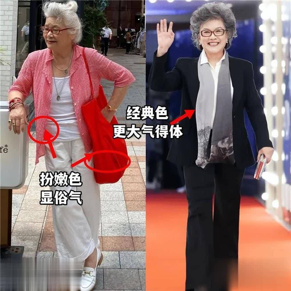 大龄女性挑选服装单品时,色彩问题至关重要。配色过于花哨,易显艳俗廉价;过于沉闷,则易显老气。像经典的大色块覆盖,既能凸显服装质感,又能展现个人品味。