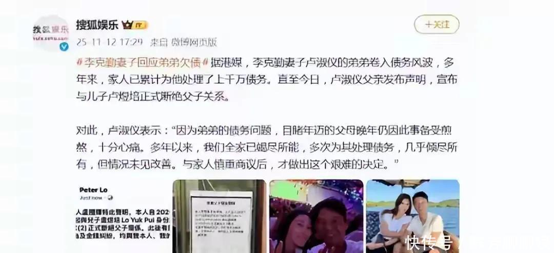一段令人心碎的家庭声明,让著名歌手李克勤的岳父一家站到了舆论的中心。77岁的卢国辉老人不久前在网络上发布声明,决定与自己的儿子卢煜培断绝父子关系。老人在声明中连儿子的身份证号码都写了出来,可见这个决定做得多么艰难和坚决。李克勤的妻子卢淑仪随后也站出来说话,她说看着年迈的父母因为弟弟的事情受尽折磨,全家人都已经尽力了,多次帮弟弟处理债务问题,几乎花光了所有积蓄。